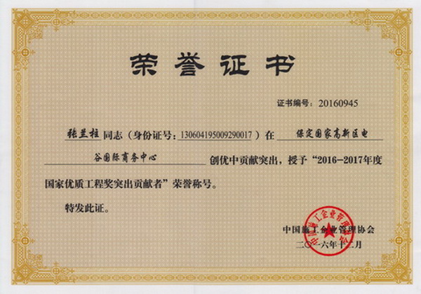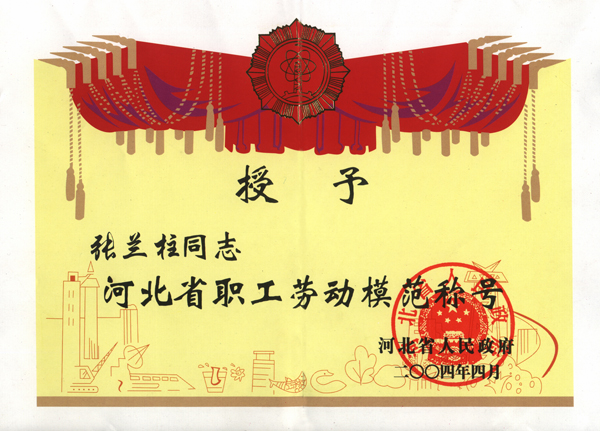张兰柱同志以他杰出的工作业绩被各级领导机关授予:全国、河北省、保定市建筑业优秀企业经理;优秀企业家;优秀共产党员;优秀党务工作者;优秀思想政治工作者;安全生产、工程质量管理先进个人;河北省优秀经理管理者;河北省建设系统劳动模范;河北省劳动模范等荣誉称号