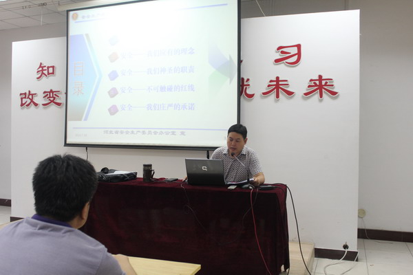 2014年7月18日,江南平台_江南(中国)安全部组织,在培训中心电教室,组织了安全生产尽职尽责警示教育。这次宣讲活动,是河北省安全生产履职尽责警示教育活动的一部分,河北省安全生产履职尽责警示教育活动是经河北省政府领导同意、河北省安全生产委员会组织开展的。利用安全生产月的时间,对全省11.6万生产经营单位的主要负责人进行一次“安全生产履职尽责警示教育”。目的在于让大家进一步了解全国全省安全生产形势,明确自己身上所负的重任,强化红线意识,促进安全发展。