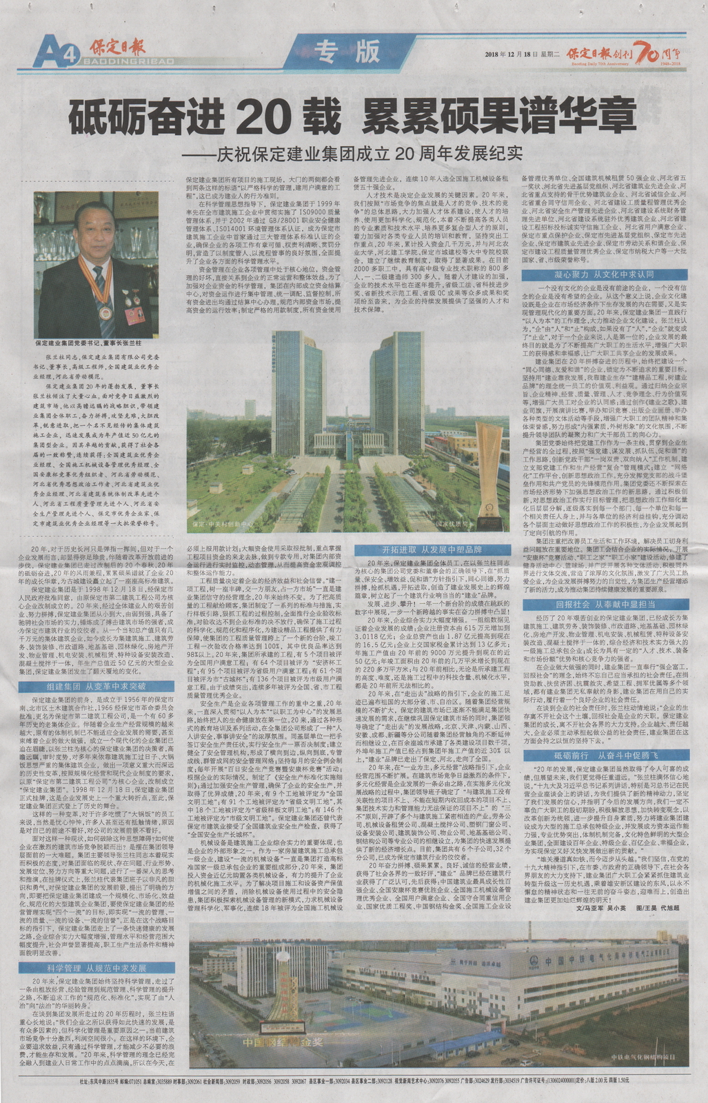 保定日报专版报道江南平台_江南(中国)成立二十周年