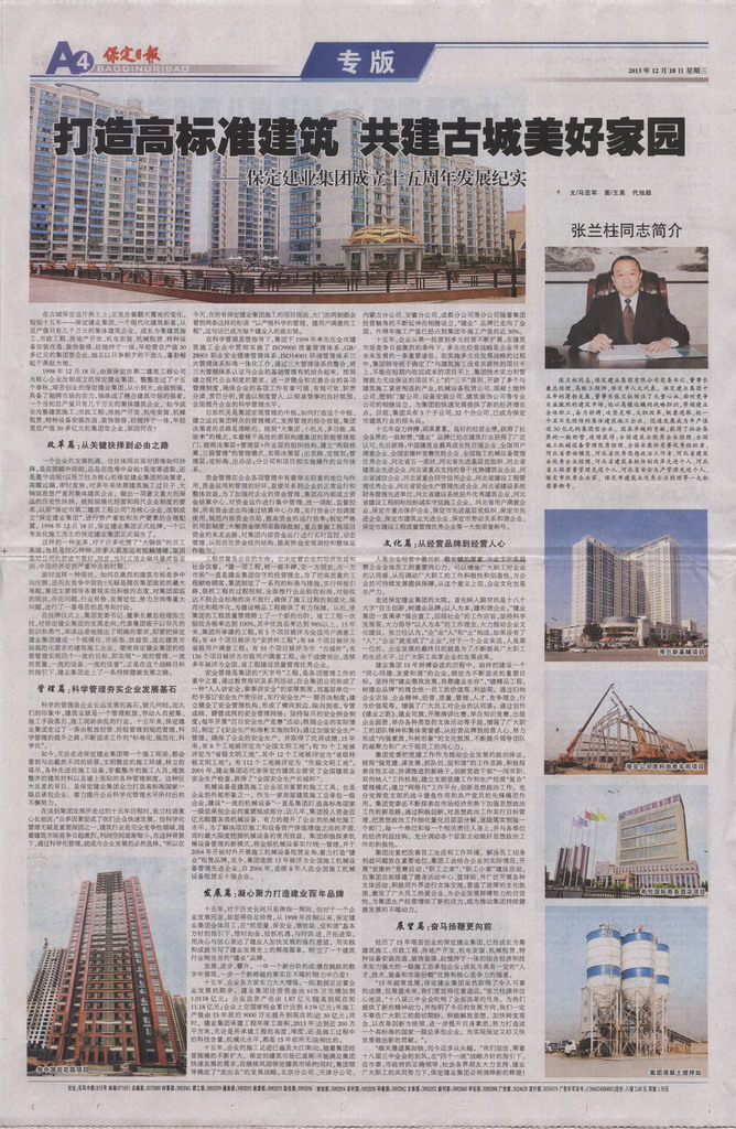 保定日报整版报道集团成立十周年